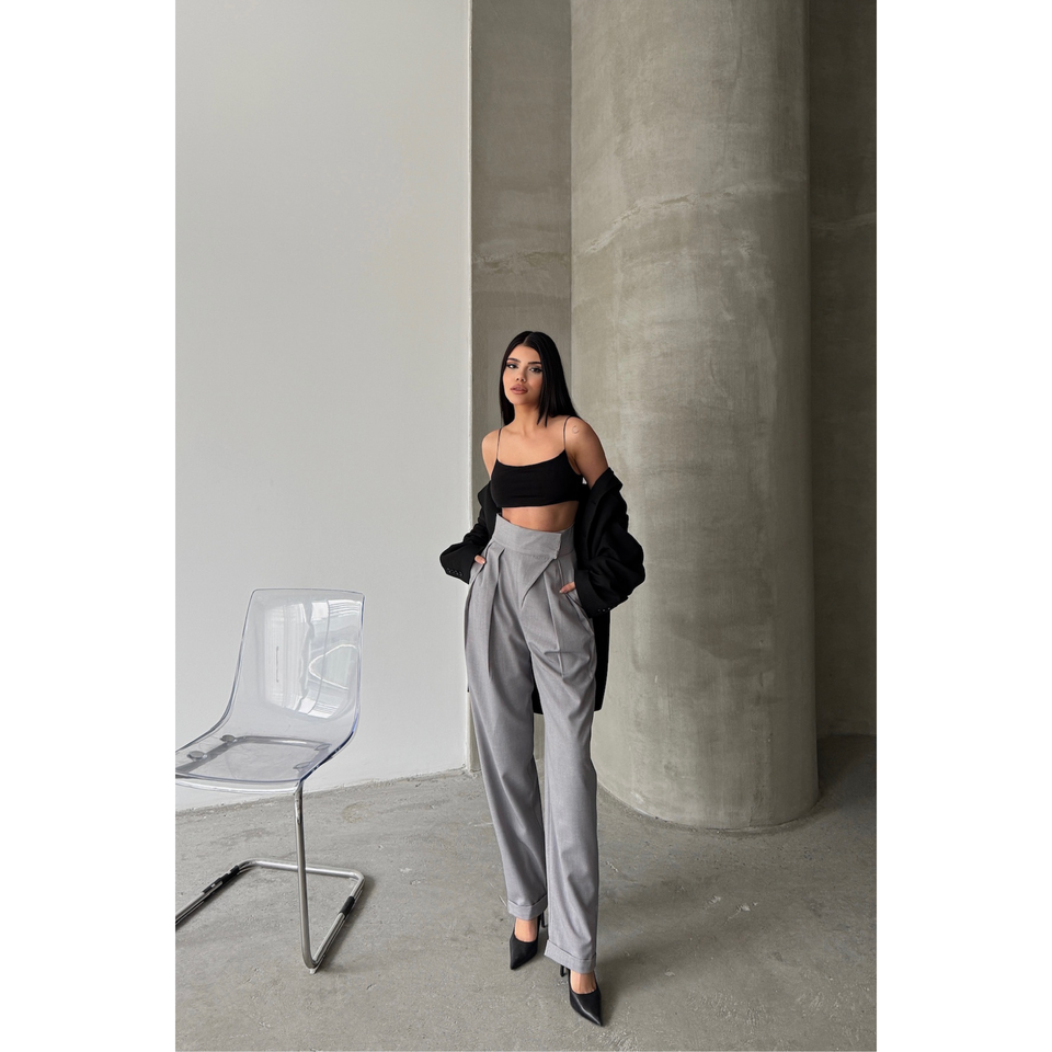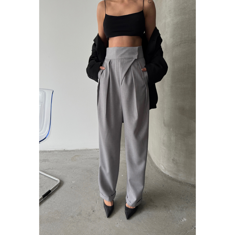 กางเกงขายาวสีเทาสำหรับผู้หญิงแบรนด์ดีไซเนอร์