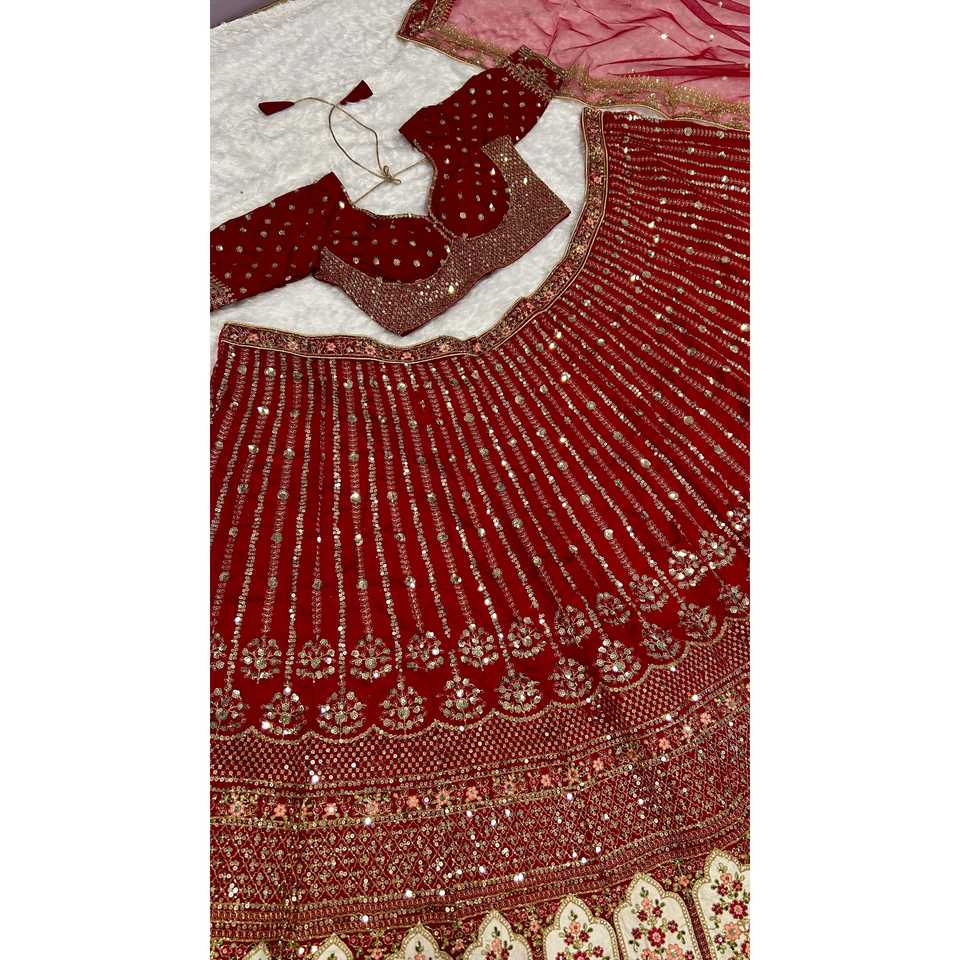 Lehenga choli ออกแบบผู้หญิงที่สวยงามกับลำดับ dori และงานด้าย