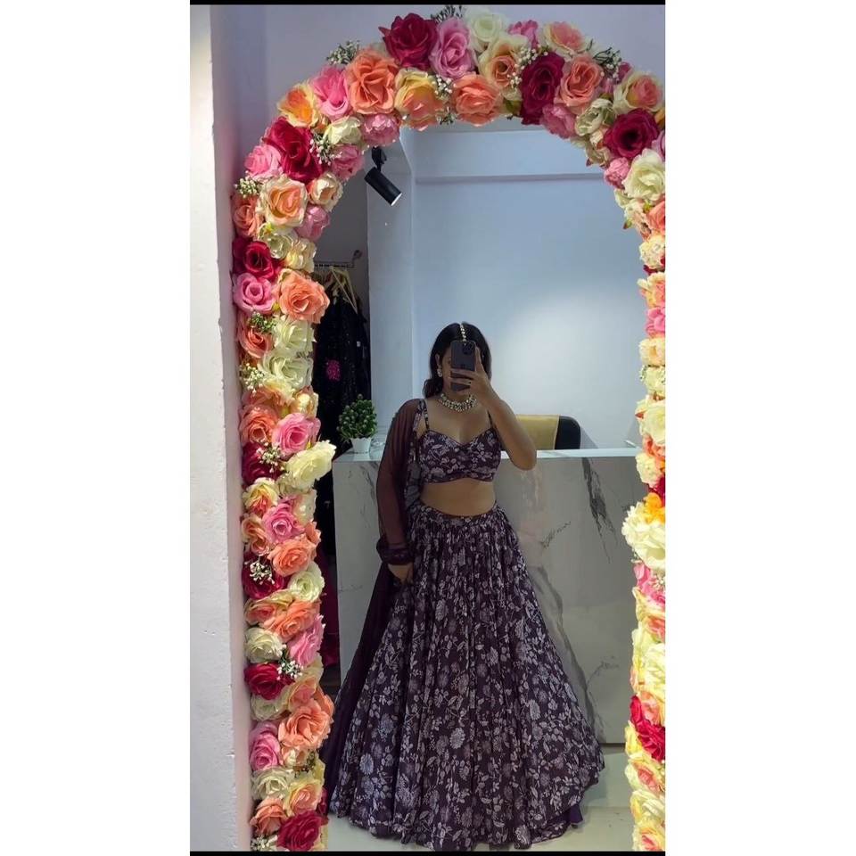 Lehenga choli ออกแบบสำหรับผู้หญิงที่มีการพิมพ์ดิจิตอลที่สวยงาม