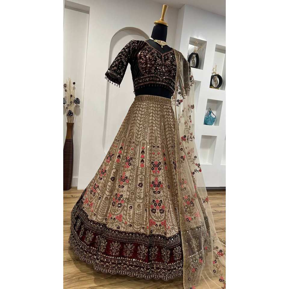 ชุดเลเฮนกาโชลีสำหรับผู้หญิง ดีไซน์เนอร์ออกแบบ ประดับด้วยงานปักเลื่อมและด้าย สวยงาม