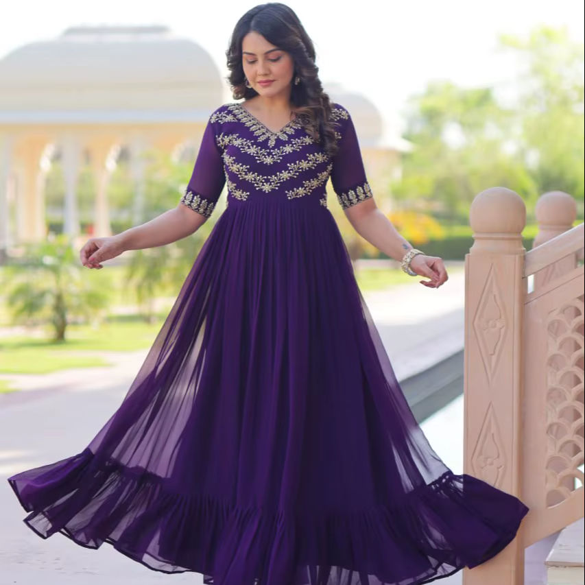 ชุดยาวอินเดียสำหรับสตรีดีไซน์เนอร์ชุดราตรีผ้าไหมสวยสำหรับใส่ทำงานปักลายสไตล์ปากีสถาน