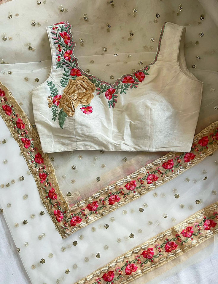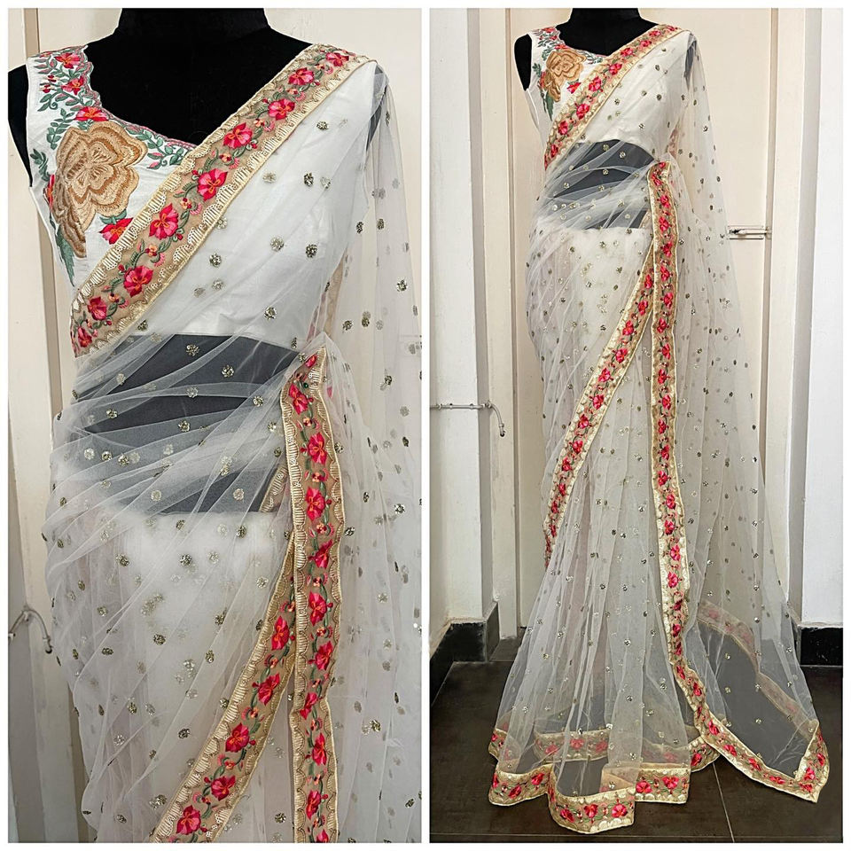 เสื้อส่าหรีผ้าตาข่ายสำหรับผู้หญิงดีไซน์เนอร์เสื้อเบลาส์แนวพื้นเมืองเสื้อเบลาส์ปาร์ตี้ส่าหรีแฟนซี