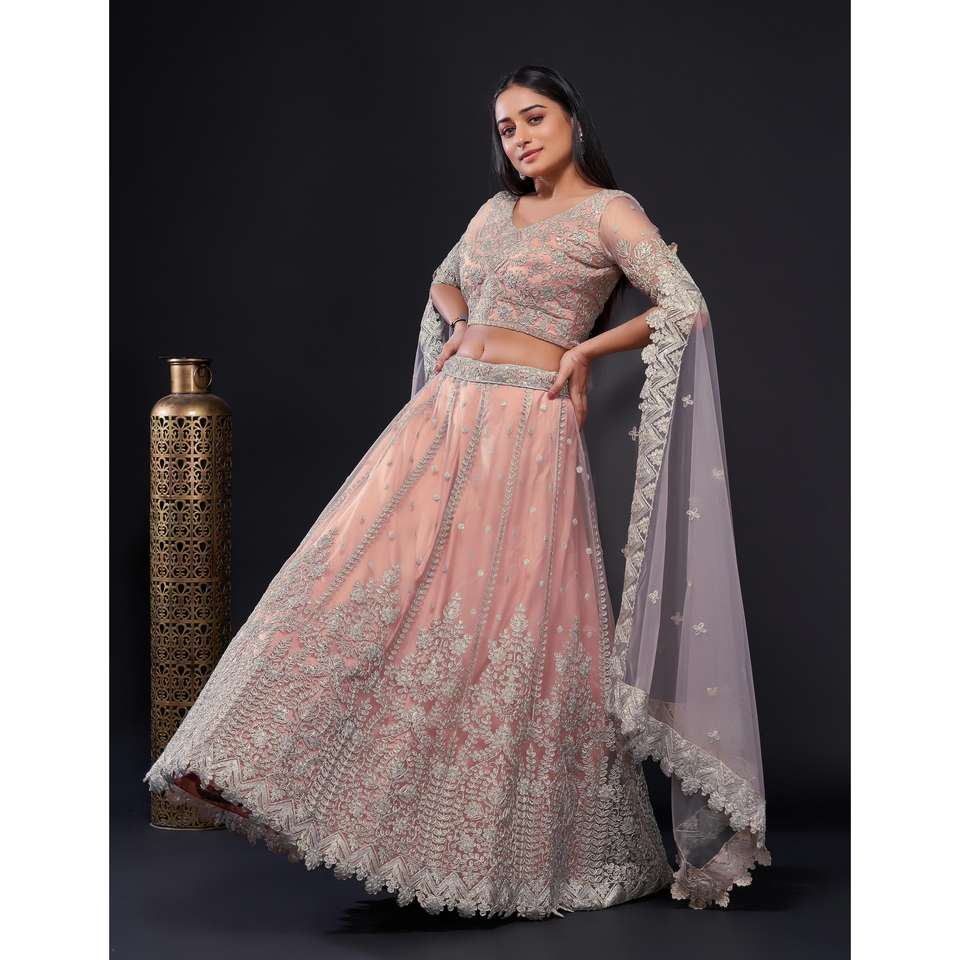 ชุดเลเฮนกาโชลีสำหรับงานปาร์ตี้ของผู้หญิง ดีไซน์เนอร์ออกแบบ พร้อมงานปักดิ้นและเลื่อม ชุดหรูหรา