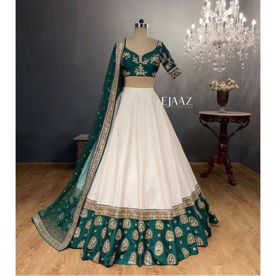 ชุดเลเฮนกาโชลีสำหรับงานปาร์ตี้สำหรับผู้หญิง ดีไซน์เนอร์ออกแบบ ประดับมุกและงานปัก