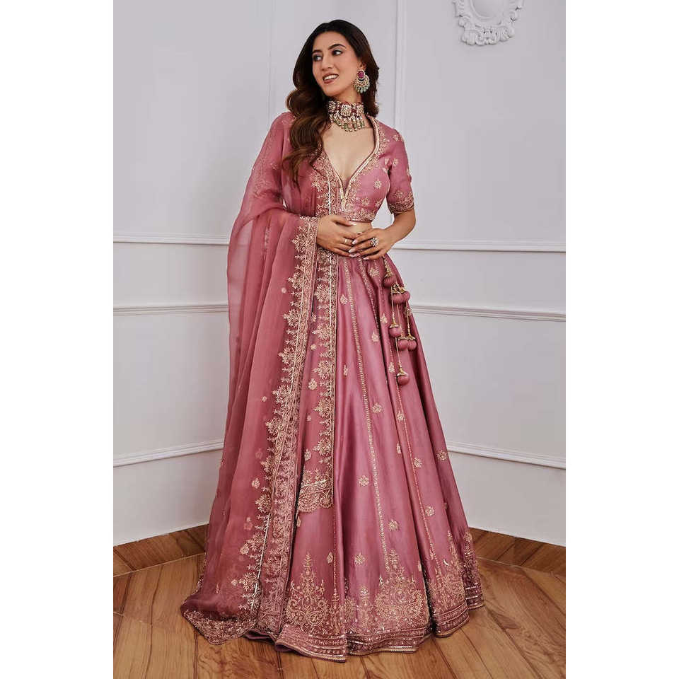 ชุดเลเฮนกาโชลีสำหรับงานปาร์ตี้สำหรับผู้หญิง ดีไซน์เนอร์ออกแบบ พร้อมงานปักเลื่อมและงานปักดิ้นทอง