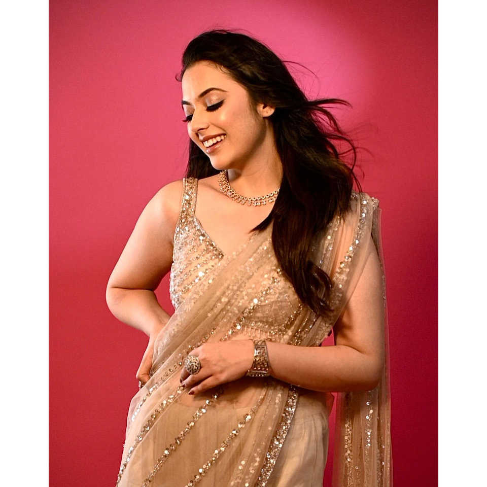 ชุดส่าหรีงานปาร์ตี้สำหรับผู้หญิง ดีไซน์เนอร์ออกแบบ พร้อมงานปักเลื่อม