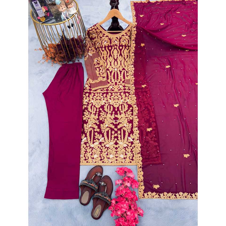 Designer Women's Party Wear Set Heavy Faux Georgette Top with Bottom & Dupatta Elegant Look