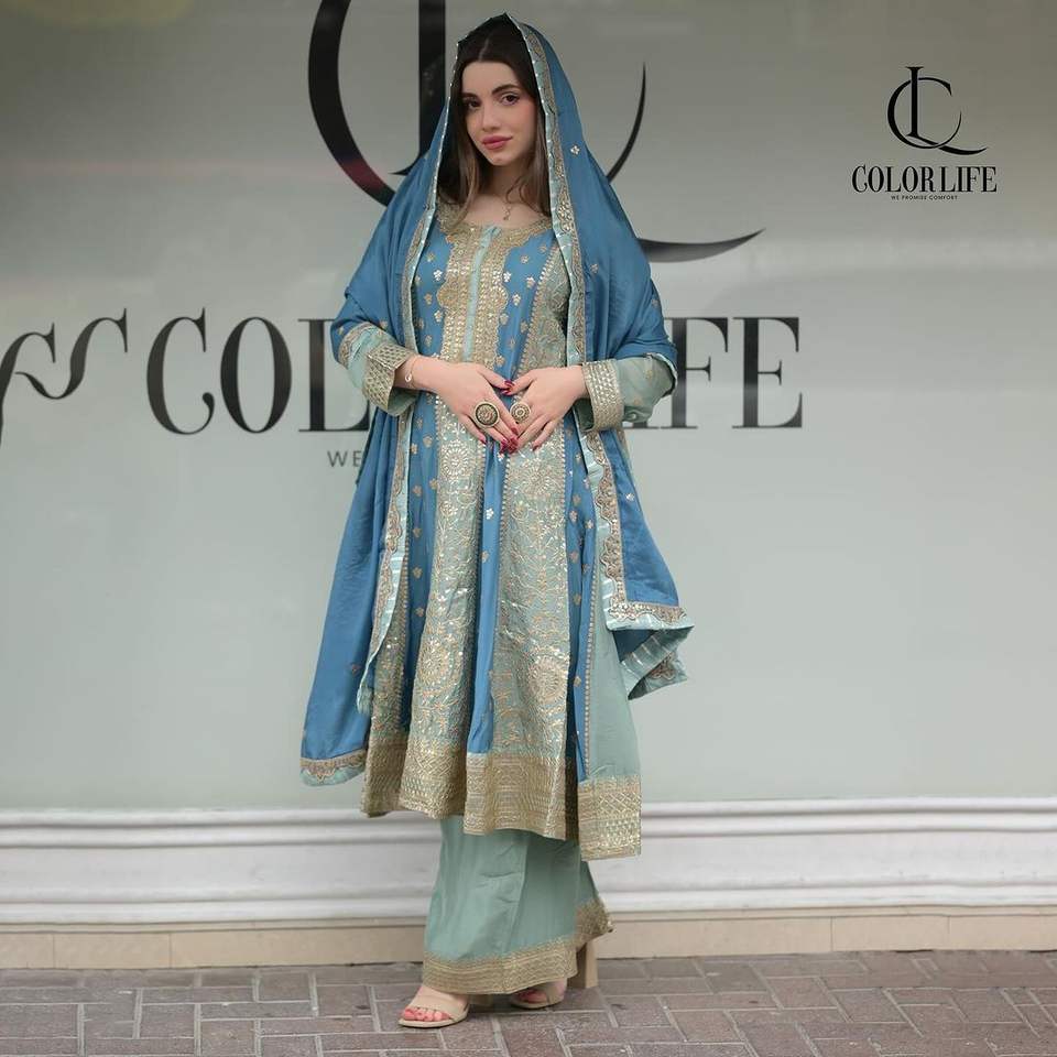 Designer Women's Party Wear Set Top Sharara Dupatta with Sequence Work