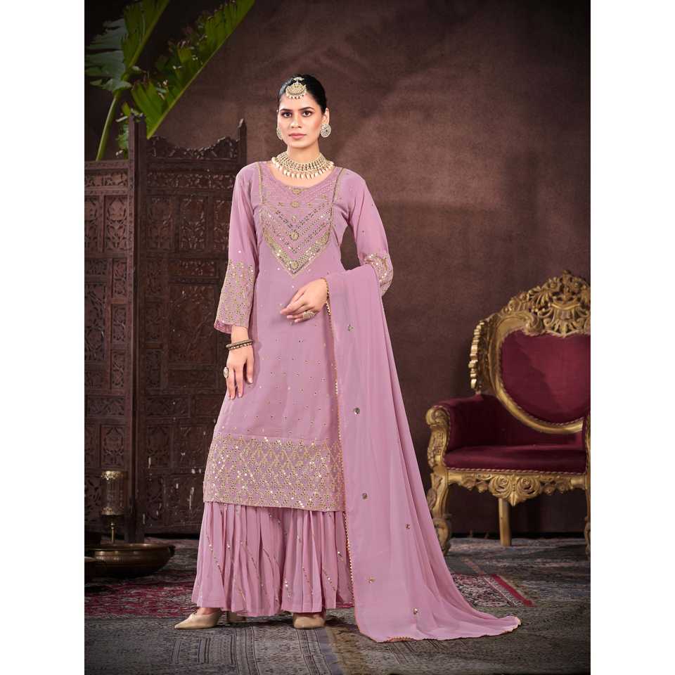 ชุดสวมใส่ปาร์ตี้ของนักออกแบบหญิงประกอบด้วยชุด dupatta ที่สวยงามด้านบนและด้านล่าง