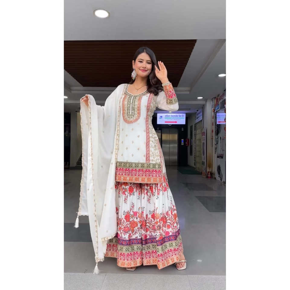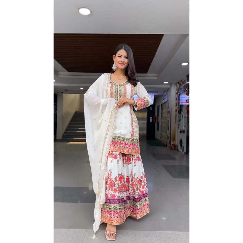 Designer Women's Party Wear Set with Beautiful Plazzo Top and Dupatta