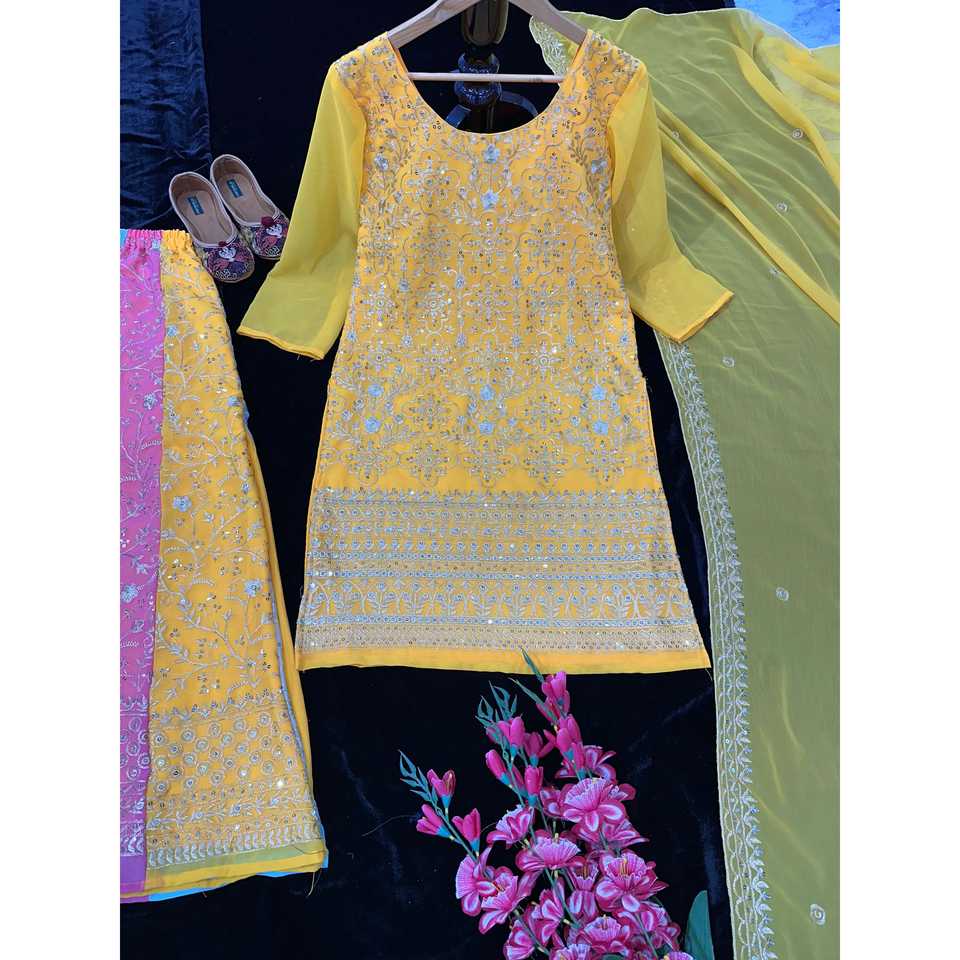 Designer Women's Party Wear Set Beautiful Top Sharara Dupatta