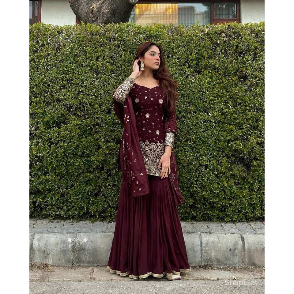 เซ็ตชุดปาร์ตี้ออกแบบโดยดีไซเนอร์สำหรับผู้หญิง sharara plazzo dupatta
