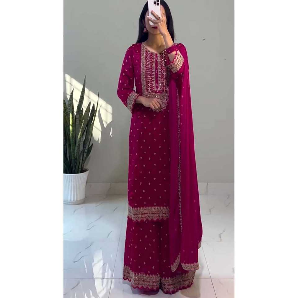 Designer Women's Party Wear Set Fancy Top with Dupatta and Fully Stitched Sharara