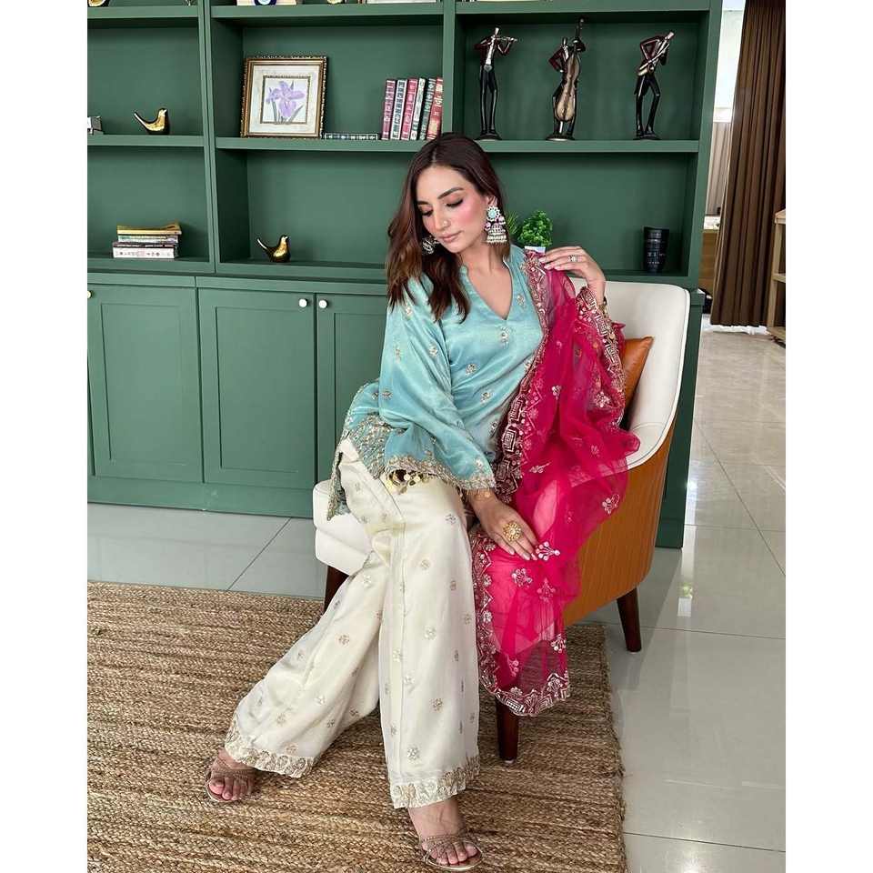 ชุดแต่งกายปาร์ตี้สำหรับผู้หญิงดีไซน์เนอร์พร้อมเสื้อพลาซโซและดูปองตาที่สวยงาม