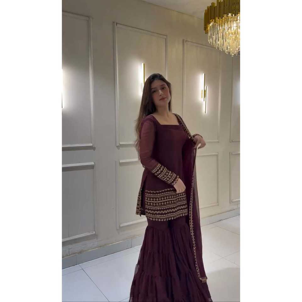 ชุดเครื่องแต่งกายงานปาร์ตี้ของนักออกแบบผู้หญิง-หรูหรา sharara และ dupatta กับงานปักที่หนักหน่วง