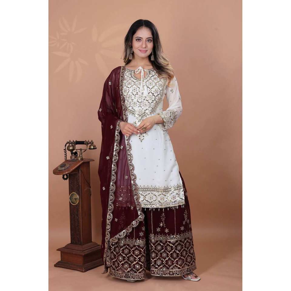 ชุดสูทงานปาร์ตี้สำหรับผู้หญิงดีไซน์เนอร์พร้อมเสื้อปักลายพลาสโซและ Dupatta