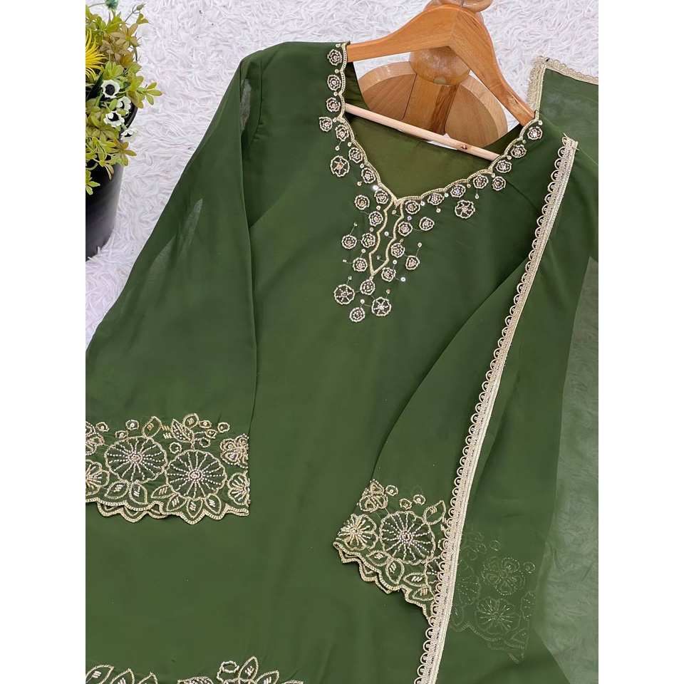 ชุดสูทงานปาร์ตี้สำหรับผู้หญิงดีไซน์เนอร์พร้อมลูกปัดปักลายเสื้อ-พลาซโซและ dupatta เพื่อให้ดูมีสไตล์