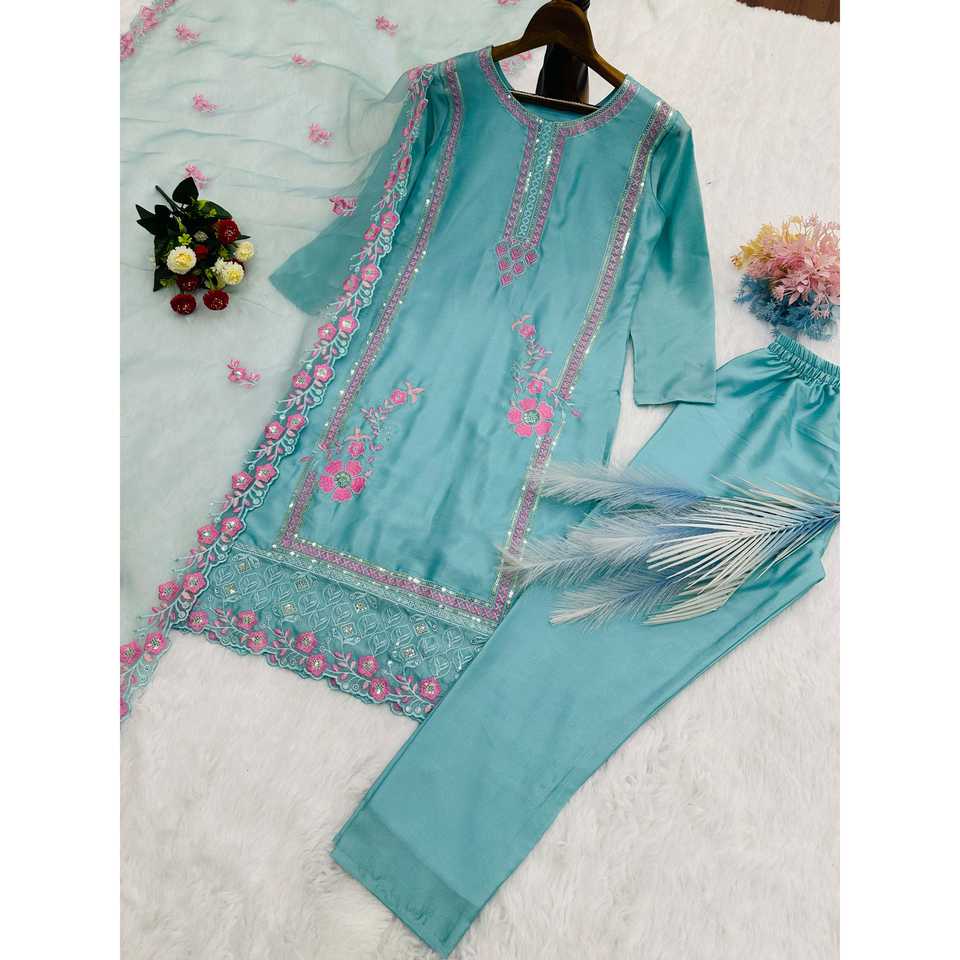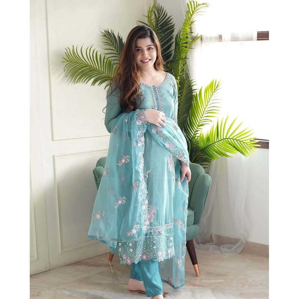 Designer Women's Party Wear Suit Set with Embroidery Thread & Sequins Work