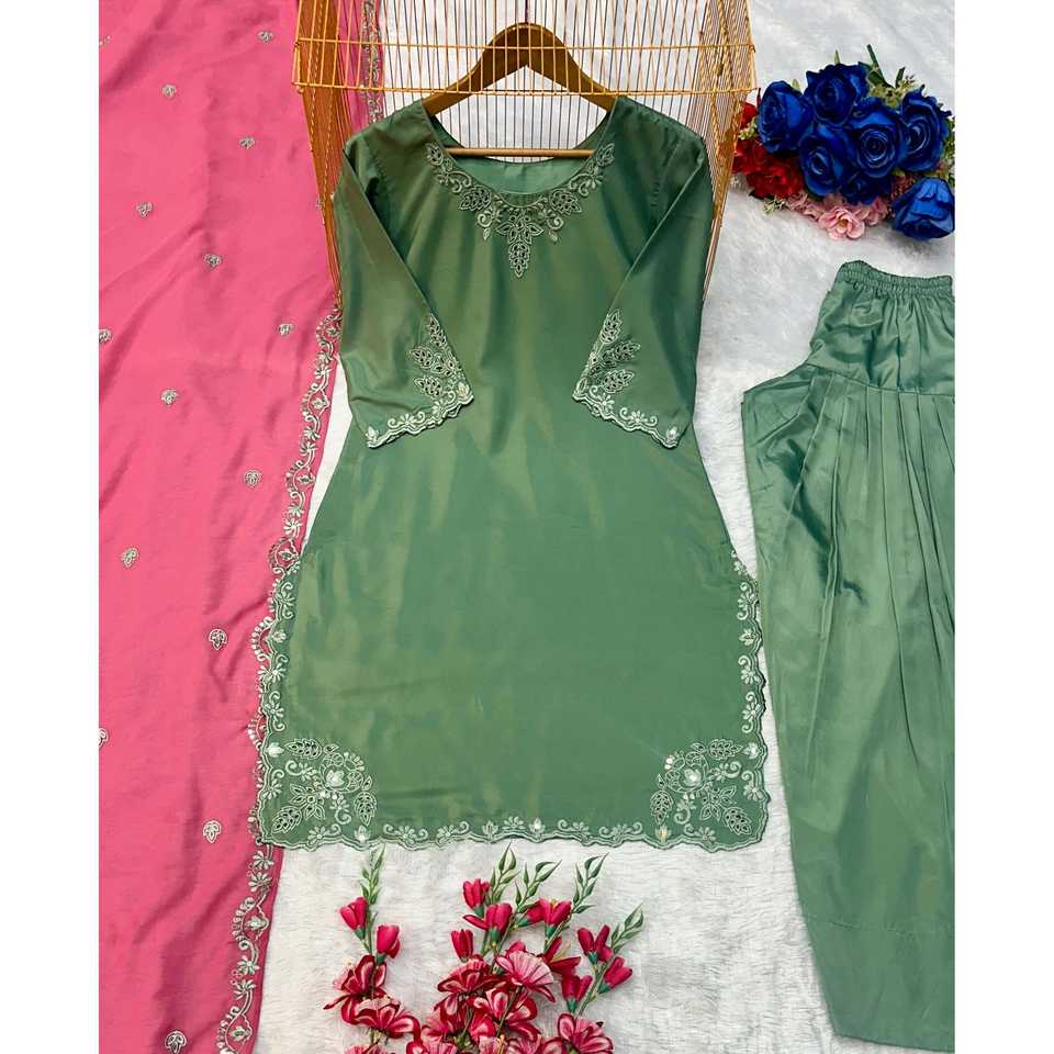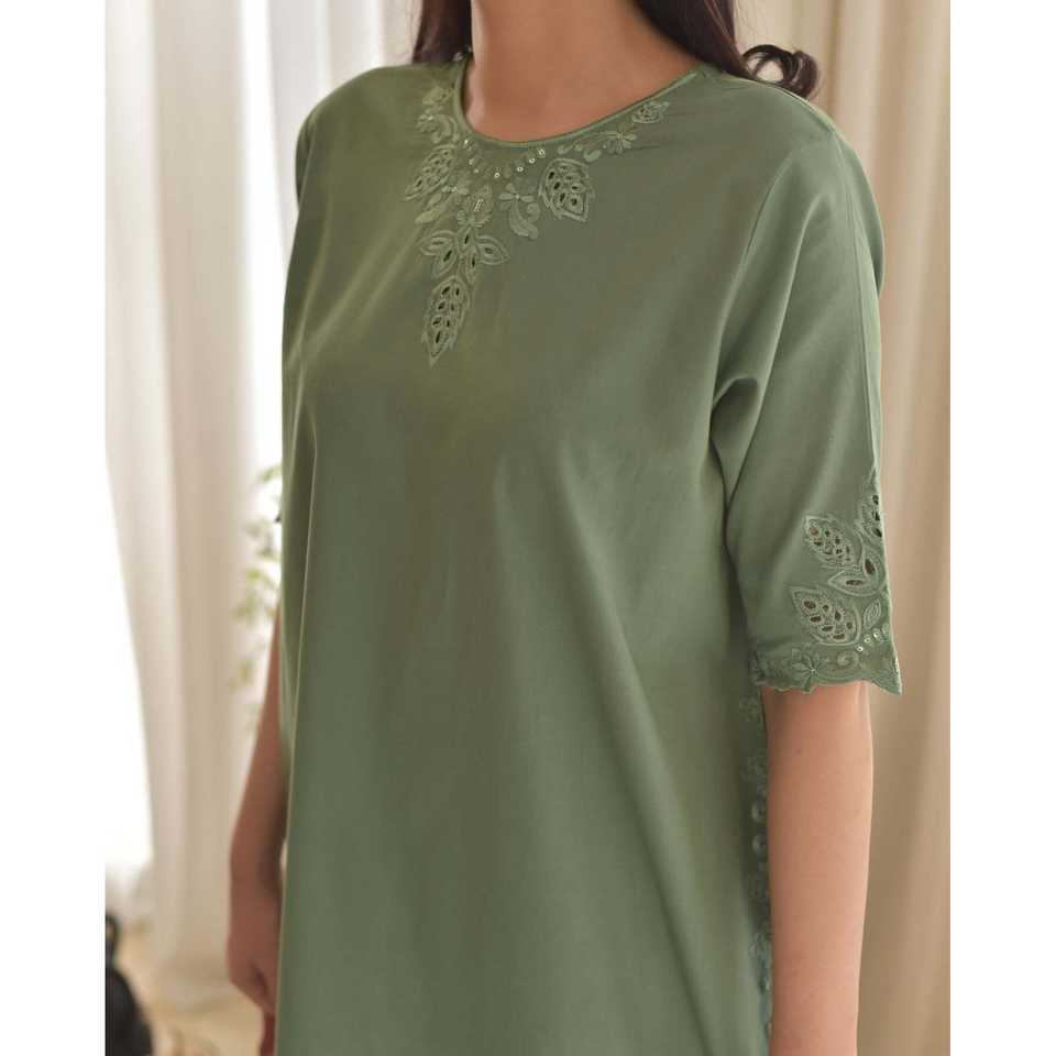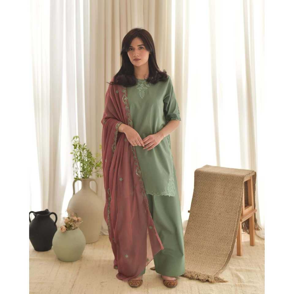 ชุดเดรสออกงานสีเขียวสำหรับผู้หญิง ยี่ห้อวาลัม แฟชั่น ไซส์ M พร้อมเสื้อ กางเกง และผ้าคลุมไหล่