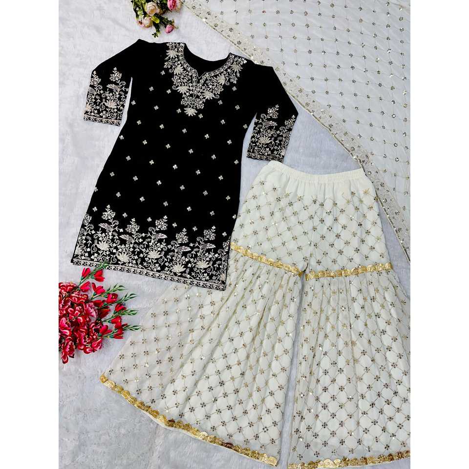 Designer Women's Party Wear Top Plazzo Dupatta Set