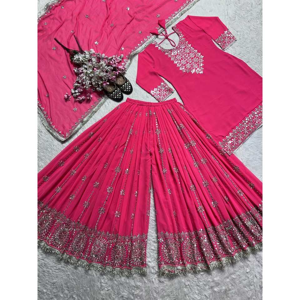Designer Women's Party Wear Top-Plazzo and Dupatta Set with Heavy Embroidery Work