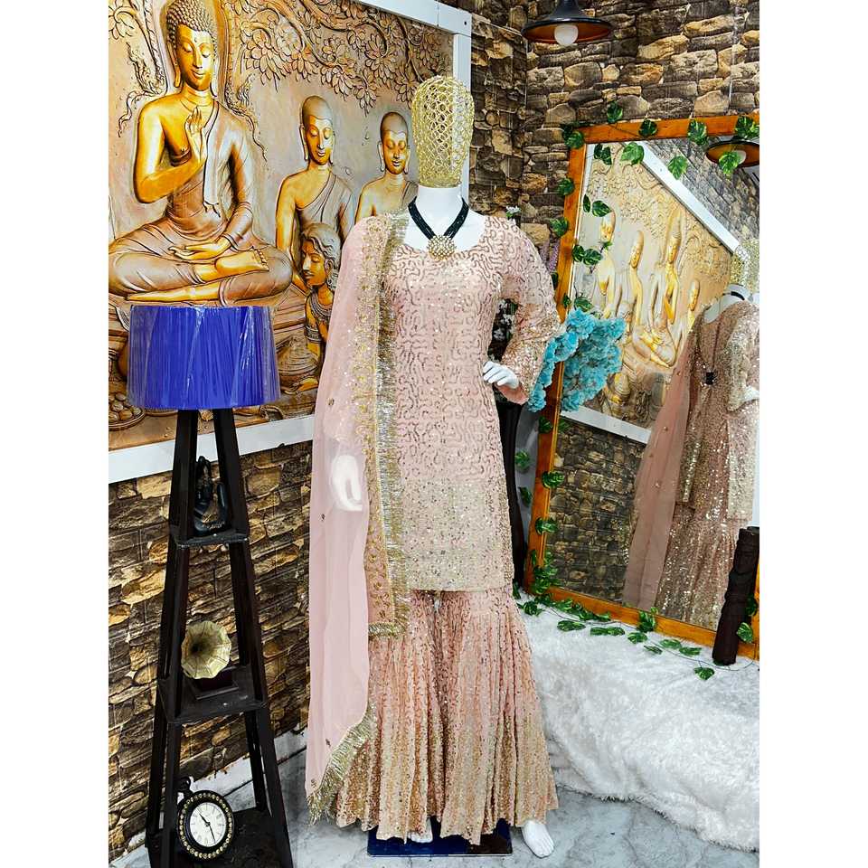 ชุดเสื้อและชุด Sharara ชุดปาร์ตี้ดีไซเนอร์สำหรับผู้หญิงมี dupatta ที่หรูหราและมีสไตล์