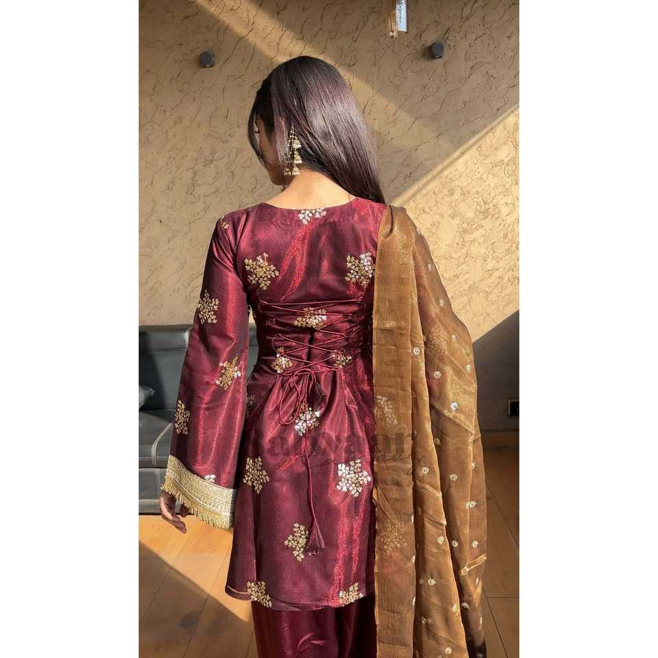 ชุดเสื้อท่อนบนและชุด Dupatta สำหรับผู้หญิงงานปาร์ตี้ดีไซน์เนอร์