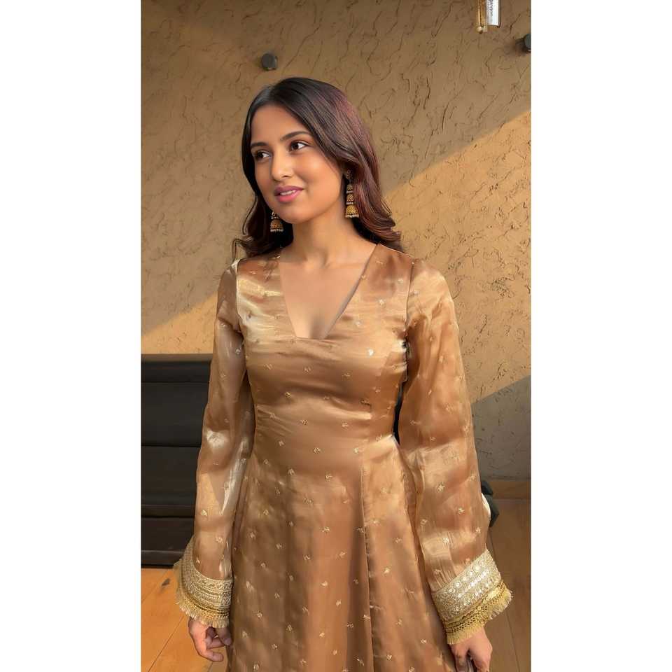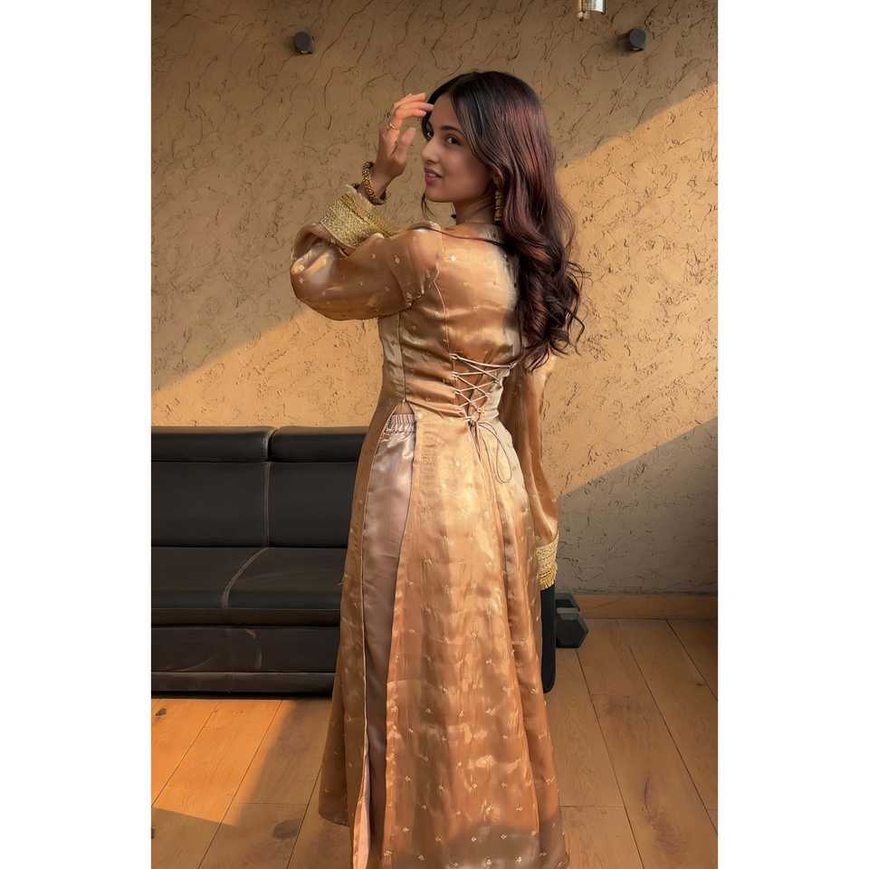 ชุดสلوارสตรีแบบดีไซเนอร์ สีแดงและเขียว พร้อมผ้าคลุมสองชั้น