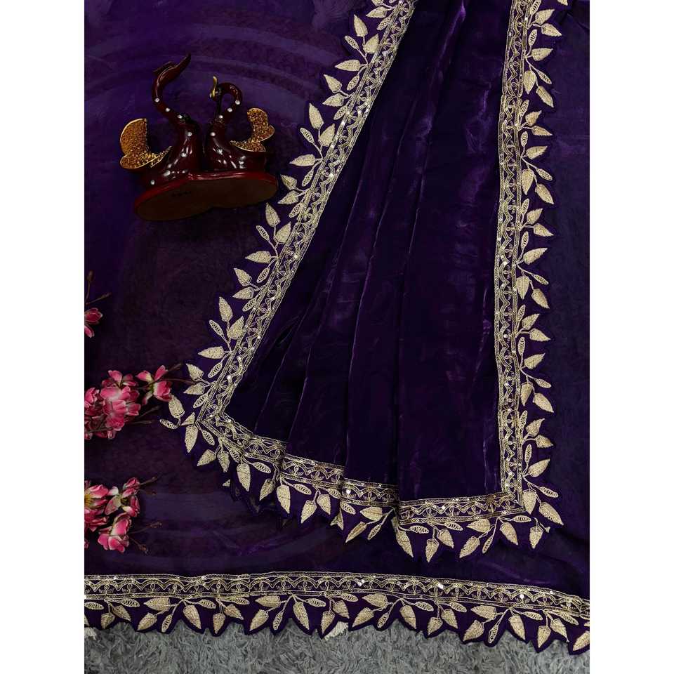 ผ้าส่าหรีดีไซเนอร์สำหรับผู้หญิงพร้อมงานปักเลื่อมและขอบลูกไม้