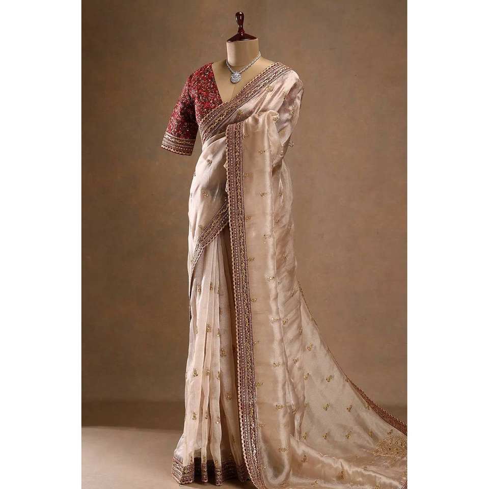 ผ้าส่าหรีดีไซเนอร์สำหรับผู้หญิงประดับเลื่อมและงานปักลาย
