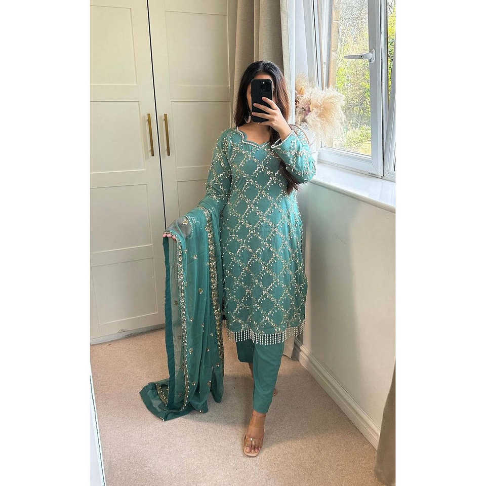 ชุดสตรีดีไซน์เนอร์กางเกงขายาว dupatta ในสไตล์แฟนซี