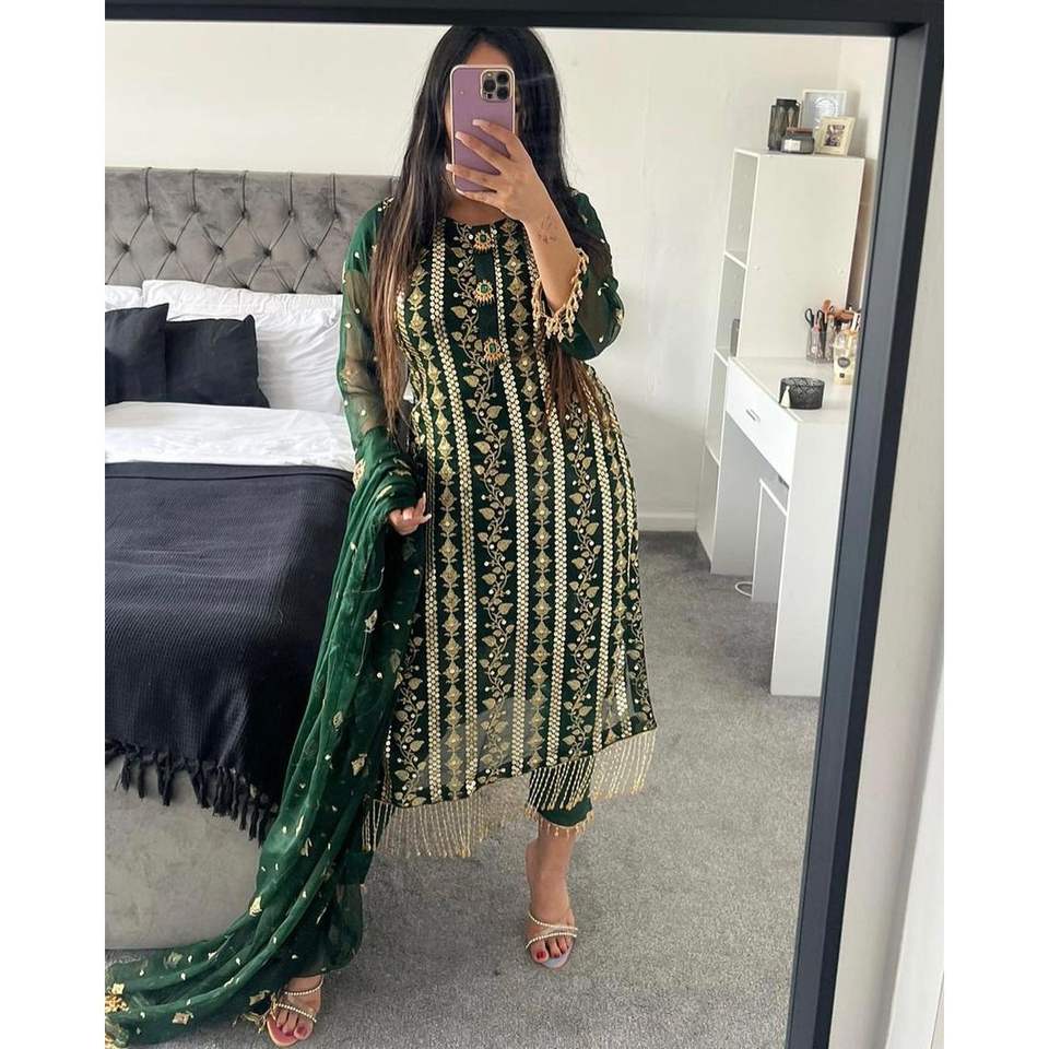 ชุดสตรีดีไซน์เนอร์กางเกงขายาว dupatta ในสไตล์แฟนซี