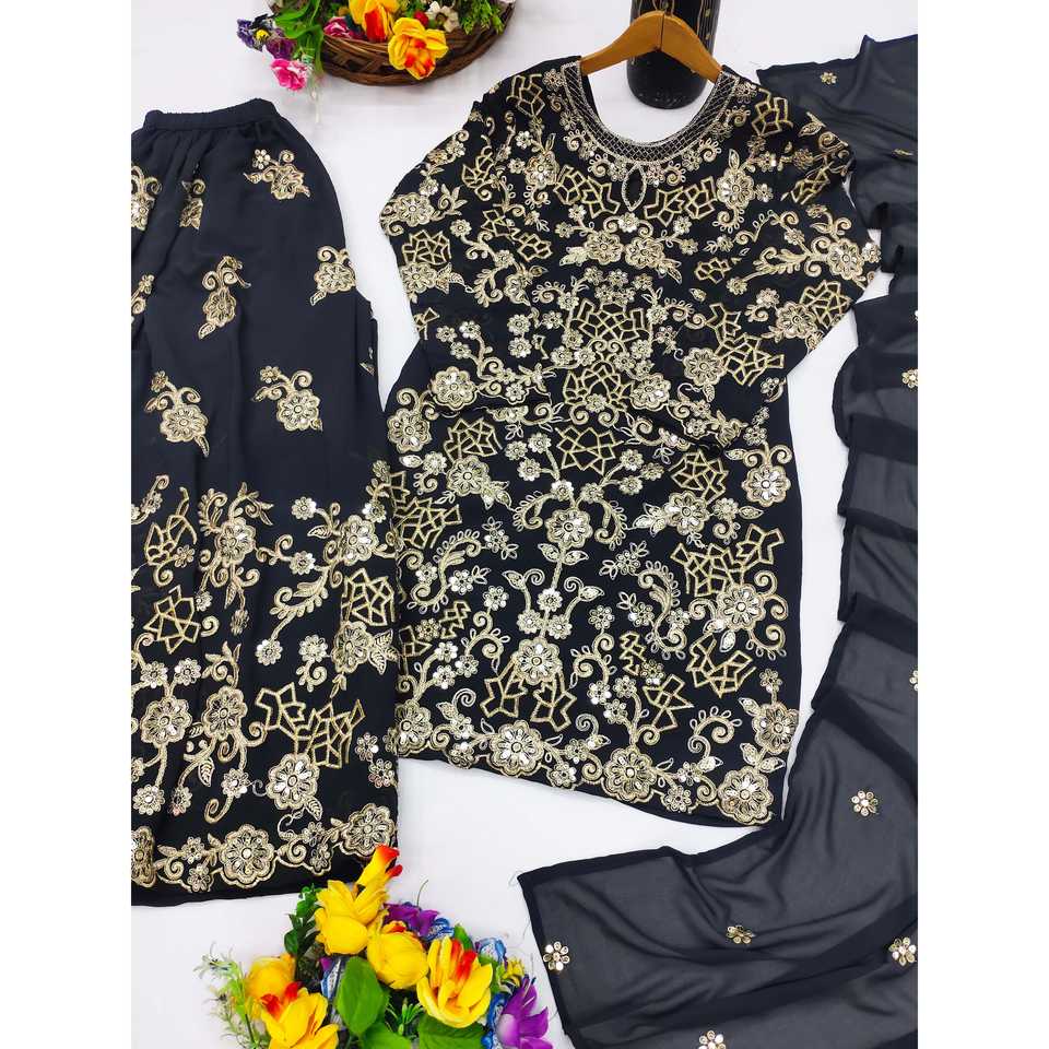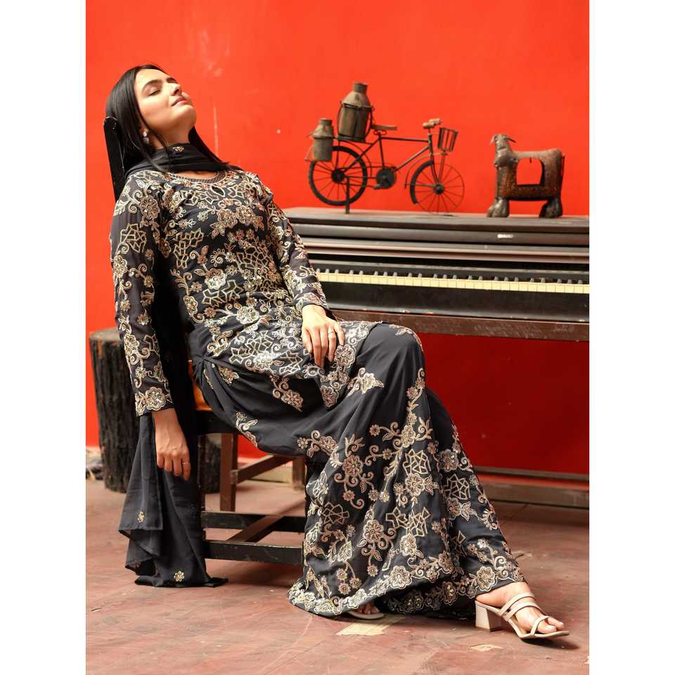 ชุดสูทชาราสำหรับผู้หญิงดีไซน์เนอร์พร้อมงานปักลวดลายที่สลับซับซ้อน