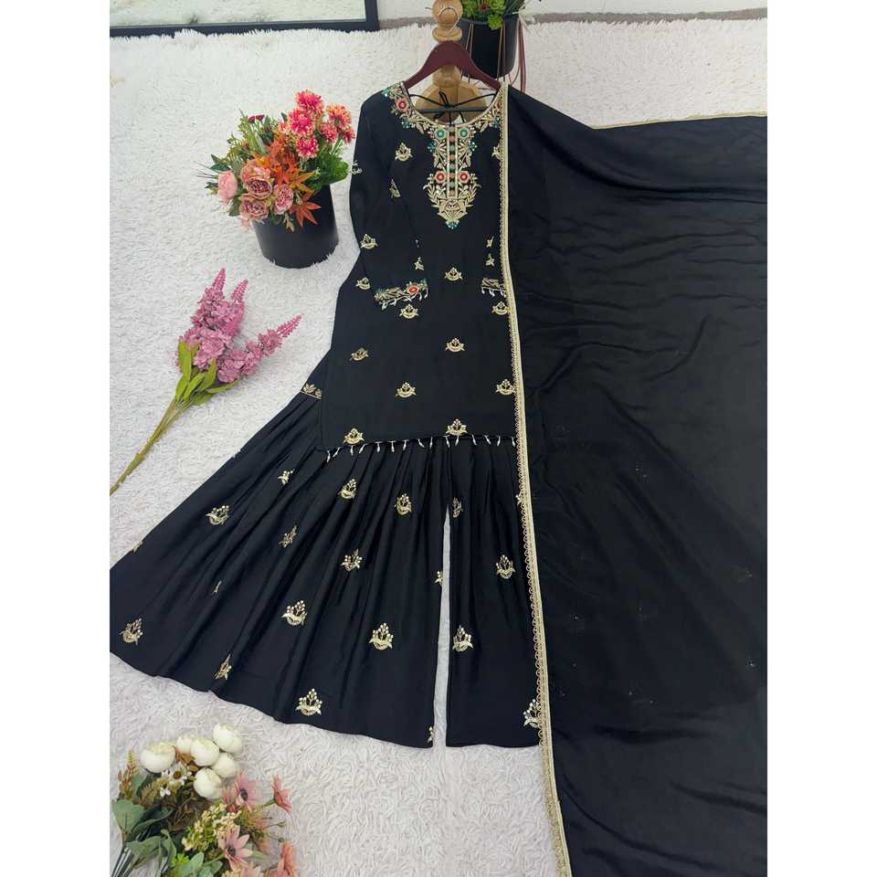 ชุดสูทผู้หญิงดีไซเนอร์ ท็อป-ชารารา และผ้าคลุมไหล่ พร้อมงานปักเลื่อมอย่างประณีต