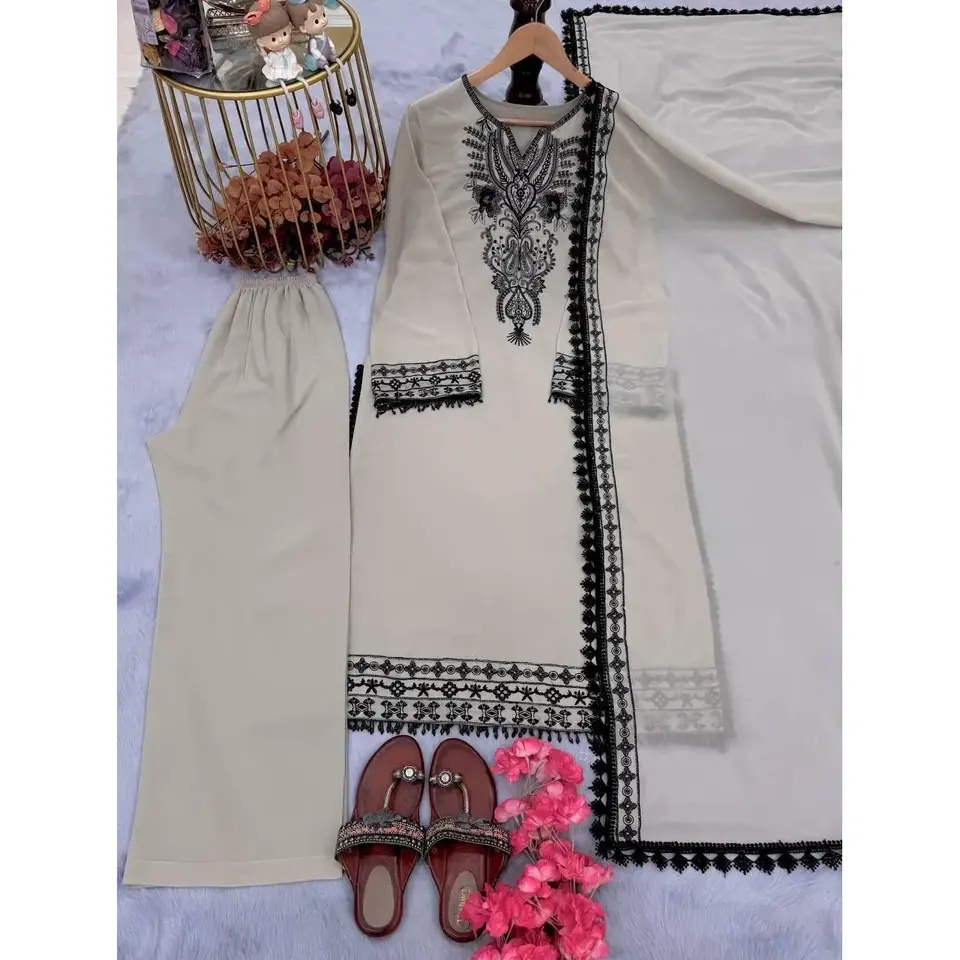 ผ้าชั้นนำ:ผ้าจอร์จเจ็ตเทียมเนื้อหนาพร้อมงานปัก