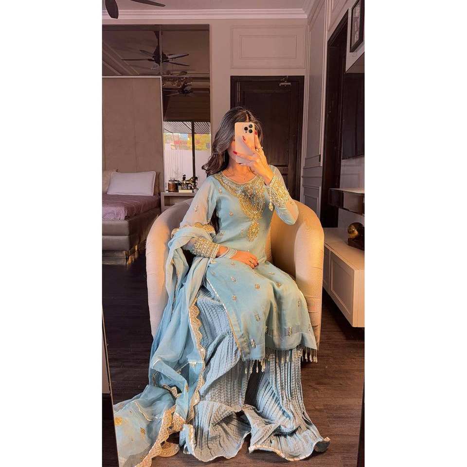Designer Women's Top-Bottom and Dupatta Set with Heavy Embroidery Sequence Work