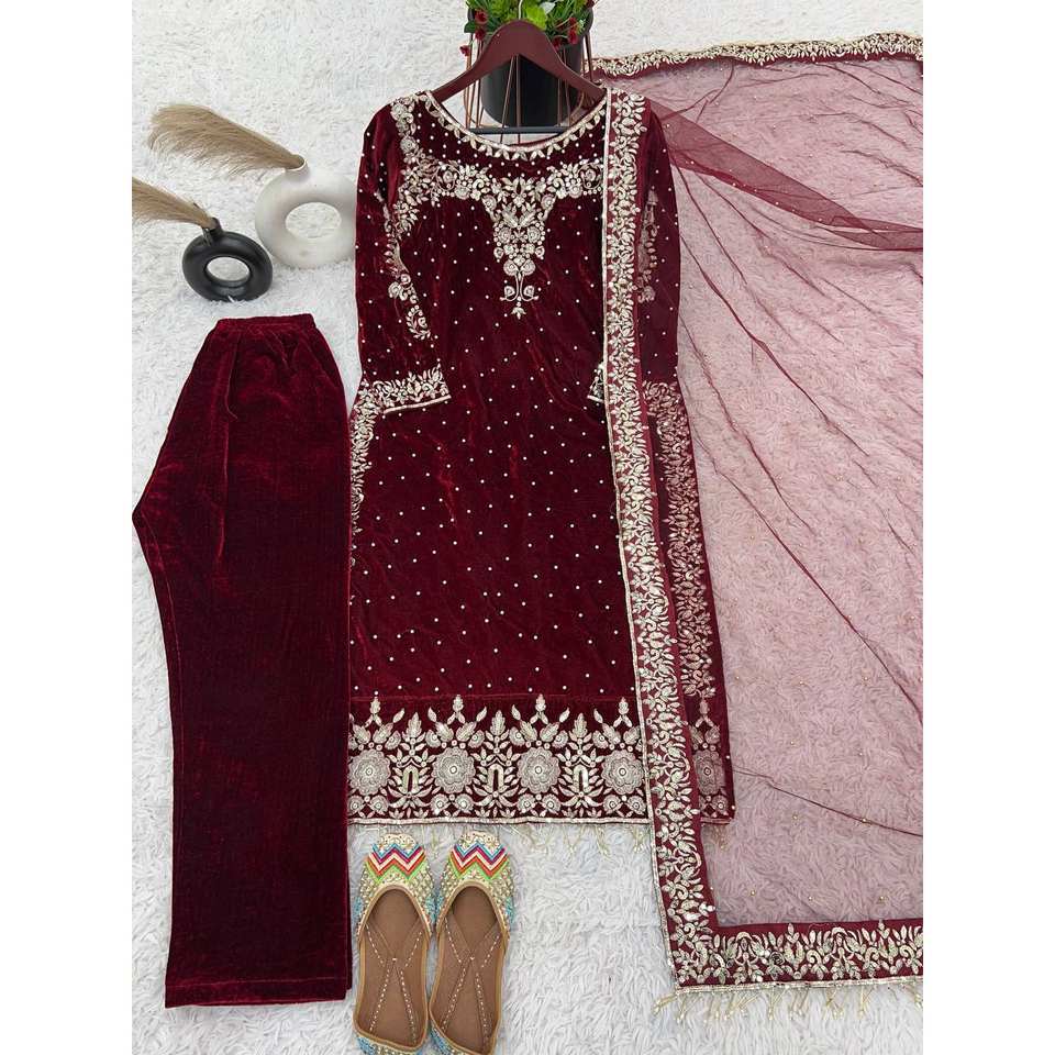ชุดเสื้อและกางเกงสำหรับผู้หญิงจากดีไซเนอร์พร้อมด้วยการปักลายจำนวนมากทำให้ดูดีมีสไตล์