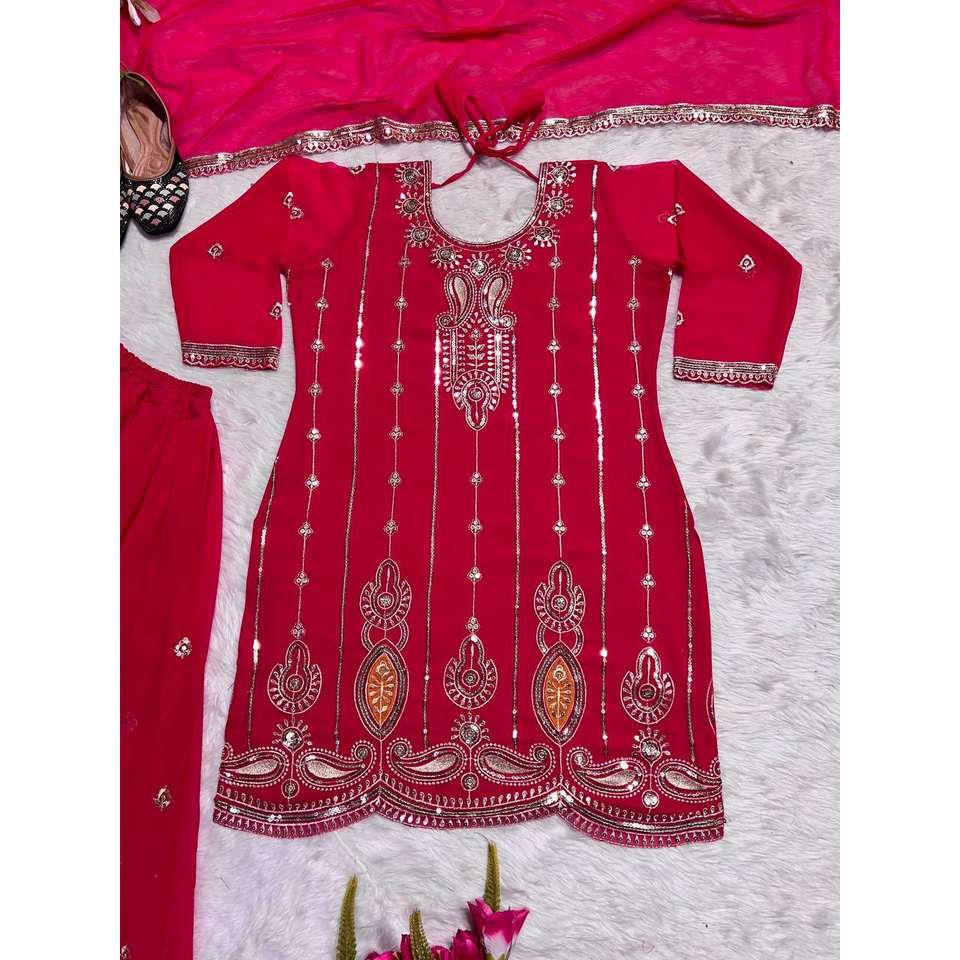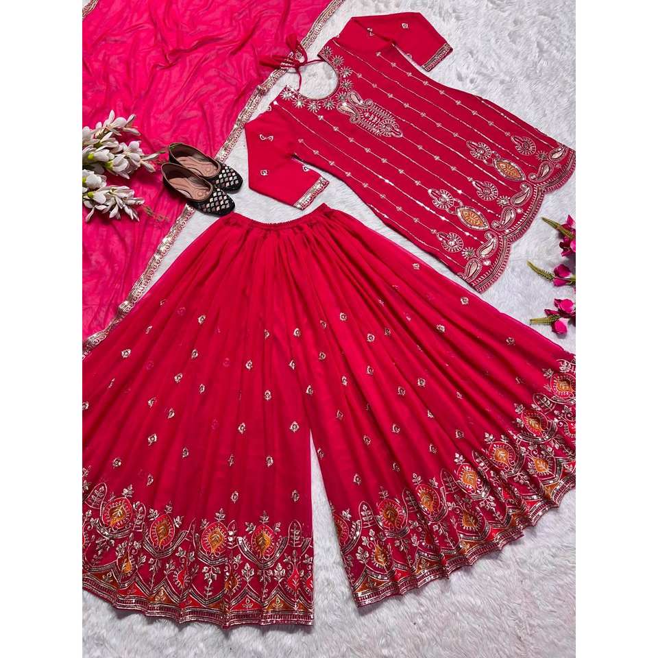 ชุดสตรีพลาสโซและชุดเสื้อผ้าที่มีงานปักอันหนักอึ้ง