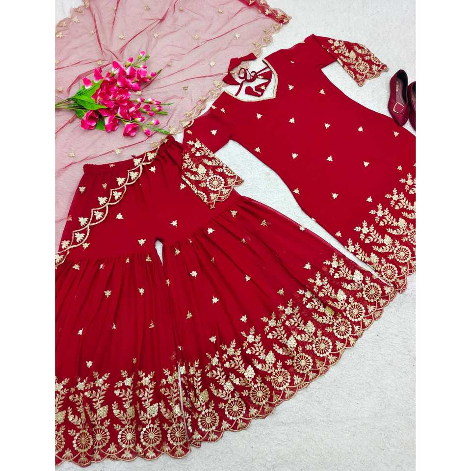 ชุดซาราร่าและชุด dupatta ดีไซเนอร์สำหรับผู้หญิงพร้อมงานปัก