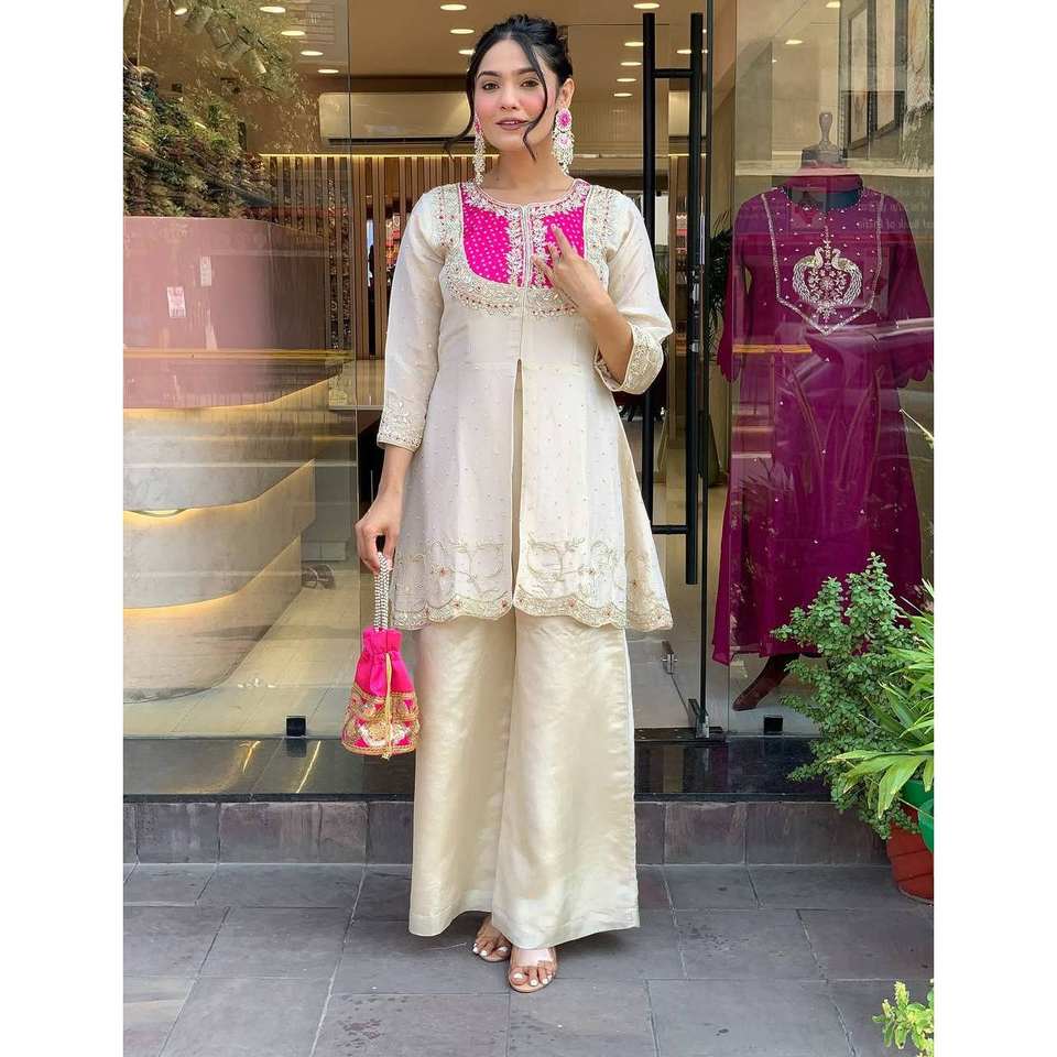 ชุดนักออกแบบด้านบนและด้านล่างของผู้หญิงพร้อมงานปักลำดับการเข้ารหัส