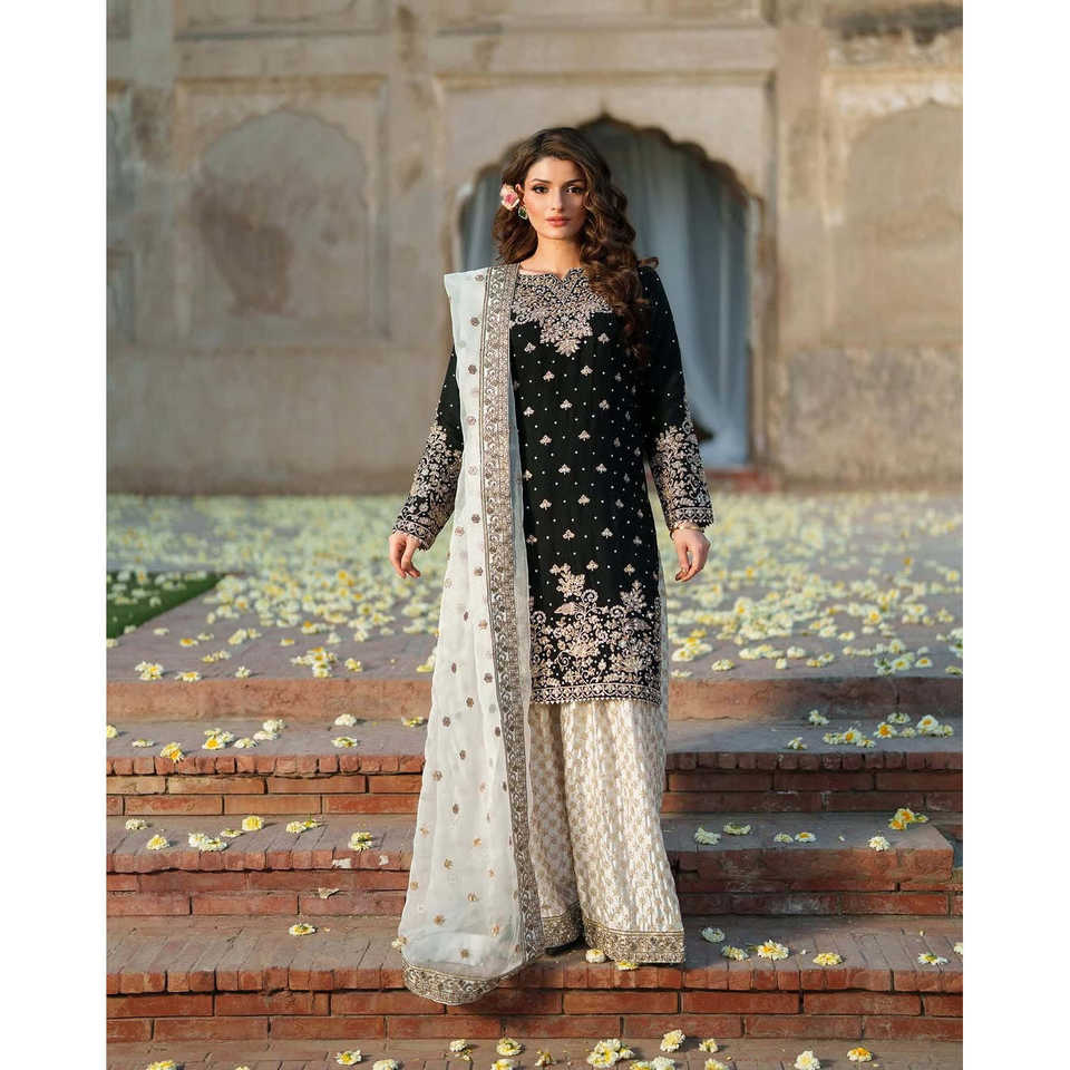 ชุดเสื้อและพลาซโซสำหรับผู้หญิงดีไซเนอร์พร้อม dupatta ที่มีงานโมติตรึง