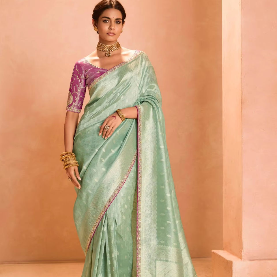 ชุดส่าหรีผ้าไหมคุณภาพสูงสำหรับผู้หญิงดีไซน์เนอร์ผ้าเนื้อแก้วเนื้อนุ่มปักลายขอบสไตล์ดั้งเดิมสมัยใหม่สำหรับงานแต่งงานอินเดีย