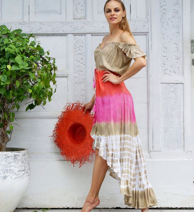Designer Women's Wear Rayon Resort Trend Tie Dye Summer Beach Dress