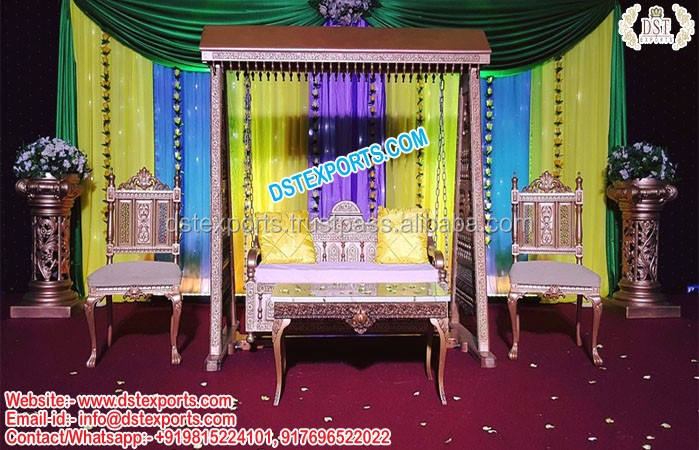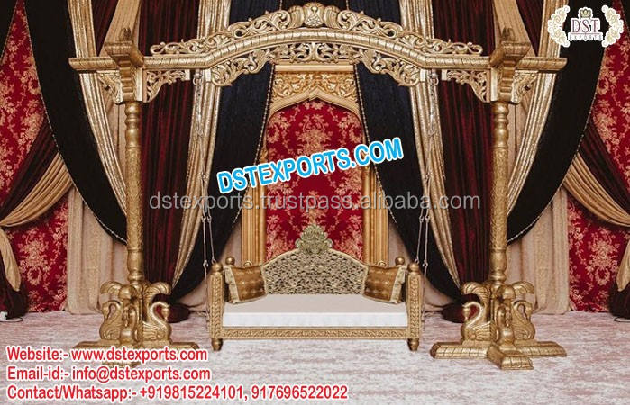 Wedding Stage Golden Wooden Carved Swing