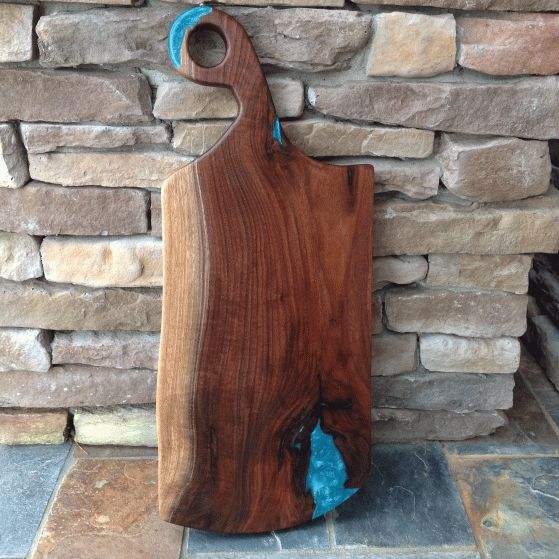เขียงไม้เคลือบอีพ็อกซี่สำหรับหั่นและเสิร์ฟ แผ่นเตรียมอาหารทำจากไม้เนื้อแข็งและเรซิ่นอีพ็อกซี่