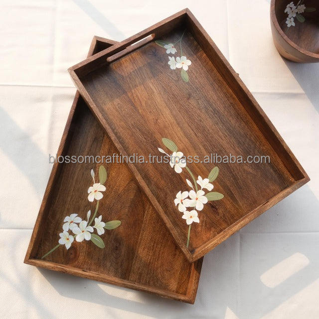 ถาดไม้ดีไซน์เนอร์ คุณภาพดีที่สุด ขายดี ทนทาน เป็นมิตรกับสิ่งแวดล้อม ใช้สำหรับเสิร์ฟ ตกแต่งบ้าน ใช้ในครัว ดีไซน์สวยงาม