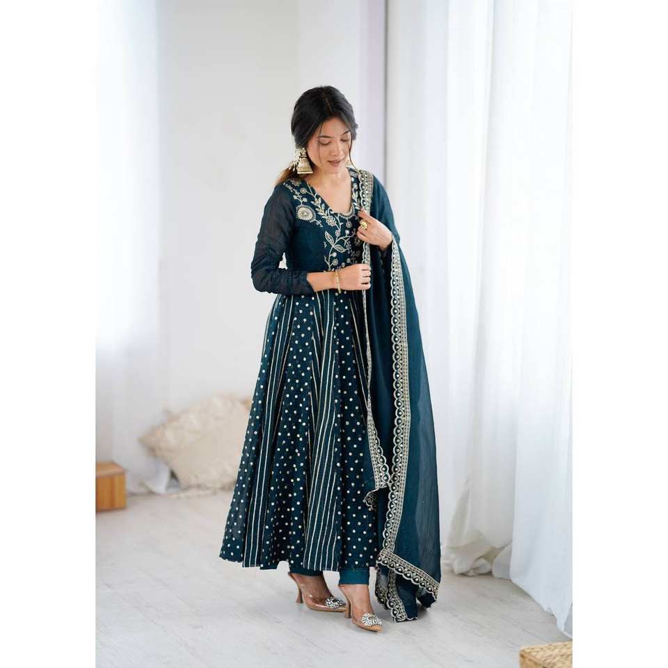 ชุดราตรี Anarkali XL ดีไซเนอร์พร้อมงานเย็บปักถักร้อยตามลำดับ