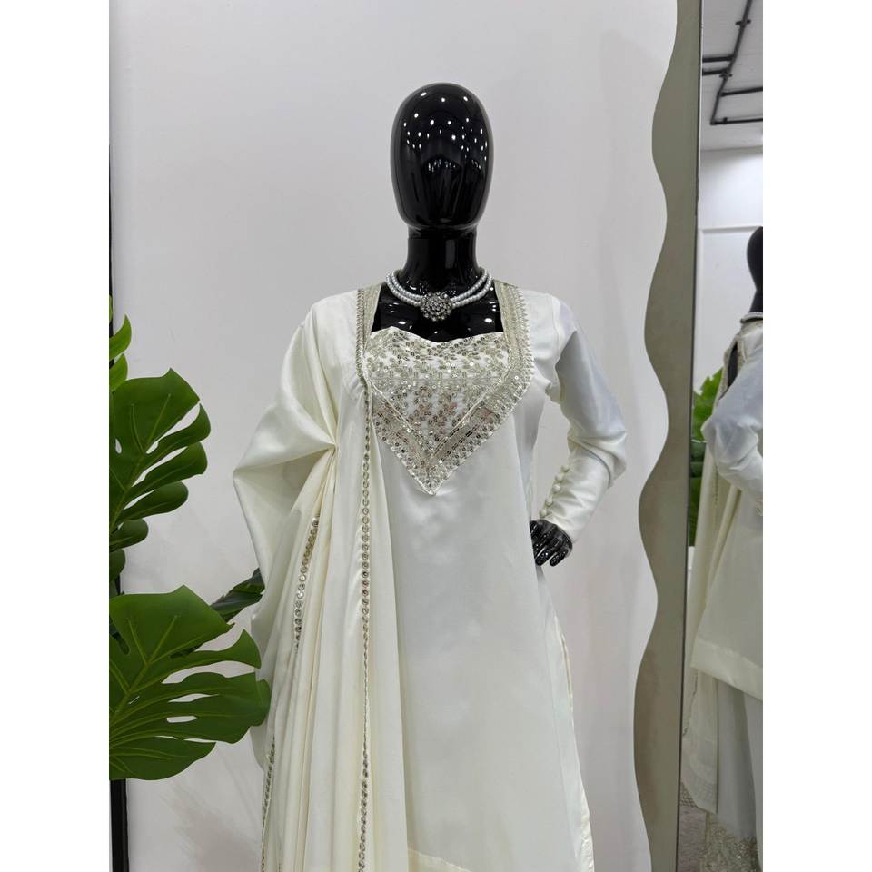 นักออกแบบ XL ด้านบนด้านล่างและชุด dupatta พร้อมด้ายและลำดับการทำงาน