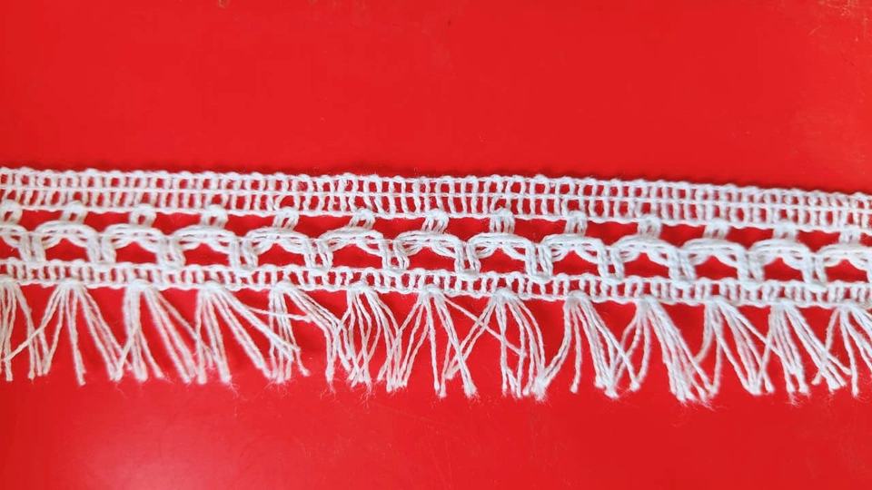 ริบบิ้นตกแต่งลายดอกไม้สีเบจแบบดั้งเดิม ผ้าฝ้ายหรูหราสำหรับงานออกแบบ ตกแต่งด้วยลูกไม้โครเชต์ เหมาะสำหรับชุดส่าหรี เลเฮนกา คุรติ และเสื้อผ้าอื่นๆ