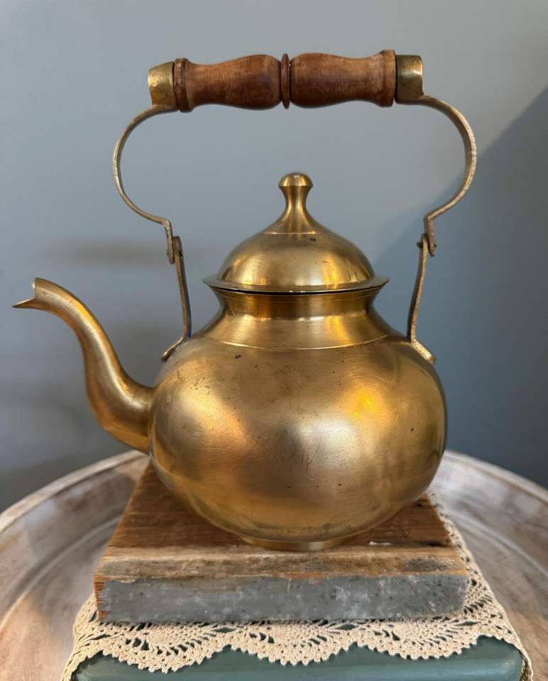 กาน้ำชาโลหะทองเหลืองพร้อมลวดลายดอกไม้ที่แกะสลักเหมาะสำหรับการตกแต่งห้องครัวในบ้านที่หรูหรา